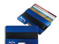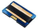 Einfach und genial: Das Etui, bestehend aus zwei mit Silikonring verbundenen Alukarten fasst bis zu fünf Bank- und Kreditkarten und schützt durch RFID Ausleseschutz vor Datenklau. Der Silikonring kann auch als Geldscheinhalter benutzt werden.